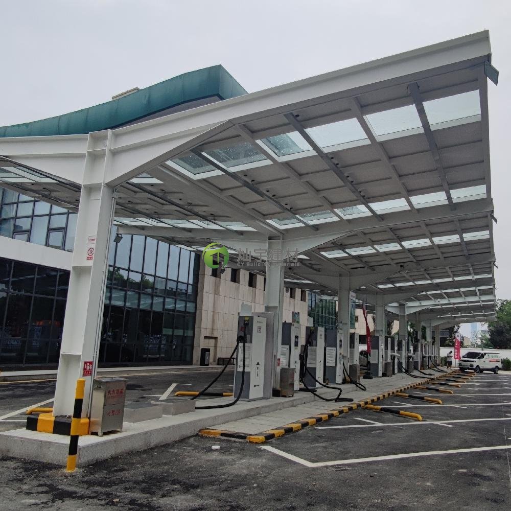 苏州午夜精品电影新型太阳能光伏车棚,助力碳达峰碳减排,随着新能源充电汽车的普及,对于充电需要越来越紧迫用电量也极具增加,苏州午夜精品电影新型建材车棚午夜福利片为了满足市场需要隆重推出太阳能光伏车棚产品,该系列产品可以跟下面的充电桩产品配套使用,多余的电可以和国家电网并网也可以储能,一举多得减少温室气体的排放也为企业带来社会价值,午夜精品电影太阳能光伏车棚顶面采用多晶硅面板或者发电透光玻璃两种光伏材料选择,框架采用钢架或者不锈钢铝合金框架,造型大小可以按照客户需要定制。